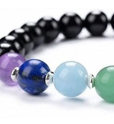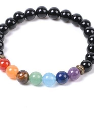 Pulsera 7 Chakras Obsidiana Negra Separadores Plateados