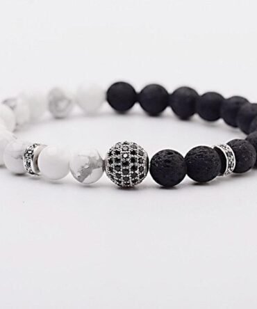Pulsera Turmalina Negra Esfera Discos de Rodio