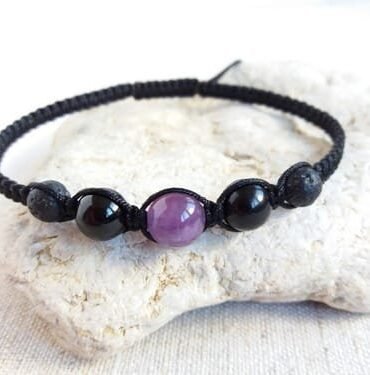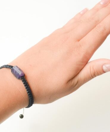 Pulsera Cuarzo Rosa Con Amatista Central 10mm