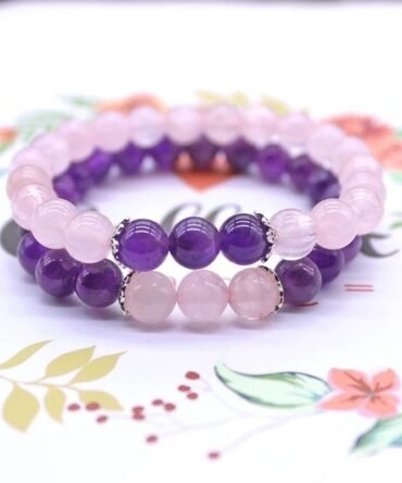 Pulseras Para Pareja Amatista Y Cuarzo Rosa