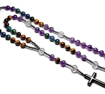 Rosario En Piedra con cruz y Separadores Hematite