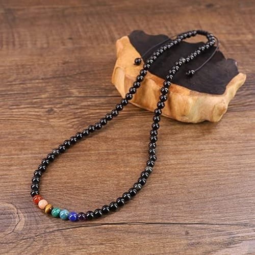 1 collar con piedra natural turmalina negra y 7chakras en 6mm.