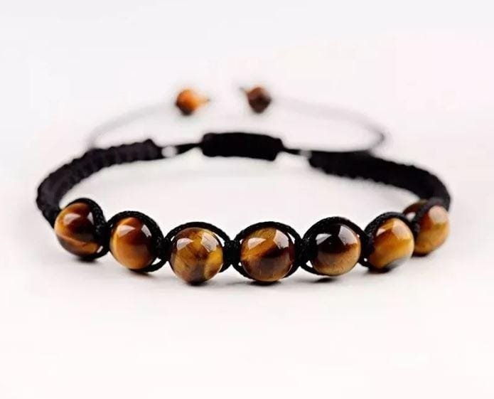 1 Manilla de piedra natural ojo de tigre en tejido de macrame