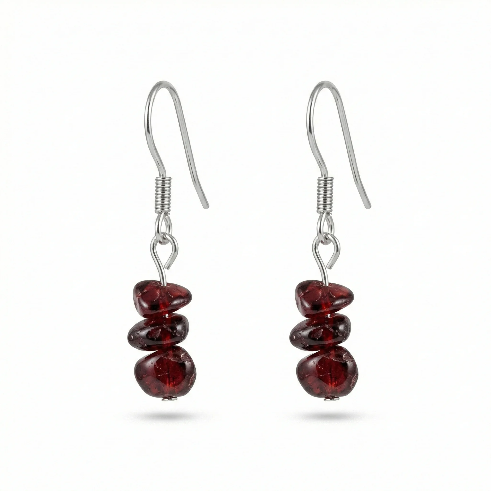 El granate utilizado en estos aretes tiene origen geográfico en la India, una región con larga tradición en la extracción y tallado de piedras naturales. Su procedencia aporta valor cultural y mineralógico, ya que esta piedra ha sido apreciada desde la antigüedad por civilizaciones que reconocían su asociación simbólica con la vitalidad, la constancia y la fuerza interior. Desde una perspectiva no médica, el granate se vincula con el arraigo y la determinación, cualidades que dialogan con una espiritualidad sobria y consciente.