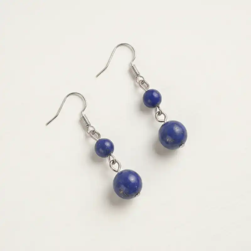 La piedra utilizada en esta pieza proviene de Afganistán, una de las regiones históricamente más reconocidas por la calidad del lapislázuli. Cada par presenta variaciones propias en intensidad de azul, distribución de vetas y textura, confirmando su autenticidad mineral. Estas diferencias no representan imperfecciones, sino la expresión directa de su origen geológico, haciendo que cada joya sea única.