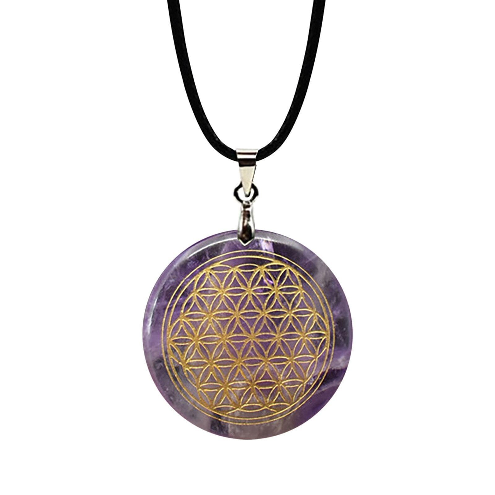 Collar Colgante Amatista Flor De La Vida. Las piedra naturales se han empleado para diferentes usos, ha tenido varios significados,