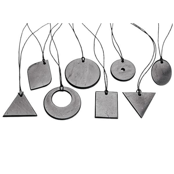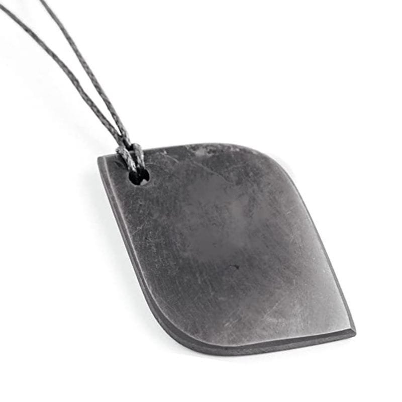 Collar Colgante Shungite. Se trata de una roca negra del periodo precámbrico (hace 3.800 millones de años) compuesta de carbón metamórfico de la fase de transacción entre la antracita y el grafito. La Shungita es procedente de Carelia (Rusia), donde se encuentran depósitos masivos de este mineral, aunque también se puede encontrar en la India, el Congo, Kazajistán y Austria.