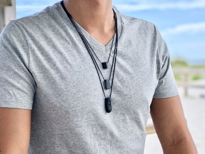 1 Collar con piedra natural turmalina negra