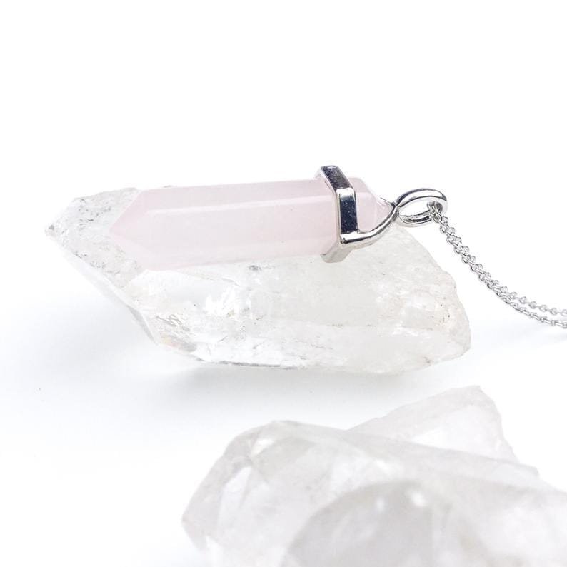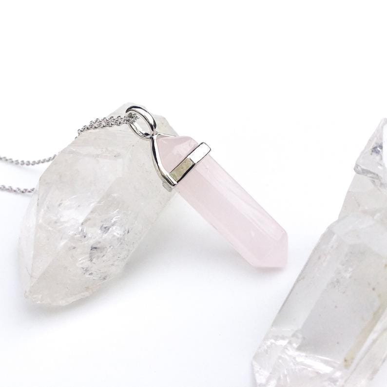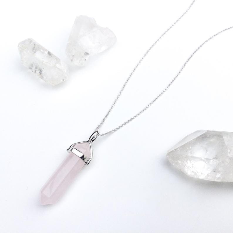 1 Collar con Dije de piedra Natural Cuarzo Rosa.