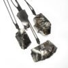 Se trata de una roca negra del periodo precámbrico (hace 3.800 millones de años) compuesta de carbón metamórfico de la fase de transacción entre la antracita y el grafito. La Shungita es procedente de Carelia (Rusia), donde se encuentran depósitos masivos de este mineral, aunque también se puede encontrar en la India, el Congo, Kazajistán y Austria.