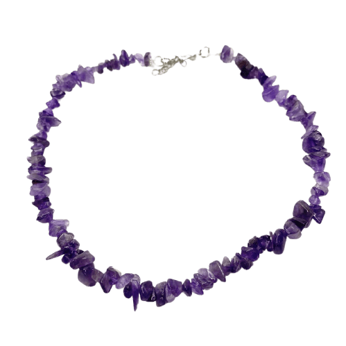 La Gargantilla Amatista Chips se encuentra elaborada con piedra natural amaista de excelente calidad y su cordon interno es de acero inoxidable, haciendo que el accesorio sea duradero y de mejor calidad, ésta es la piedra ideal para la meditación, ya que aleja los pensamientos insignificantes y te centra en lo que realmente importa.