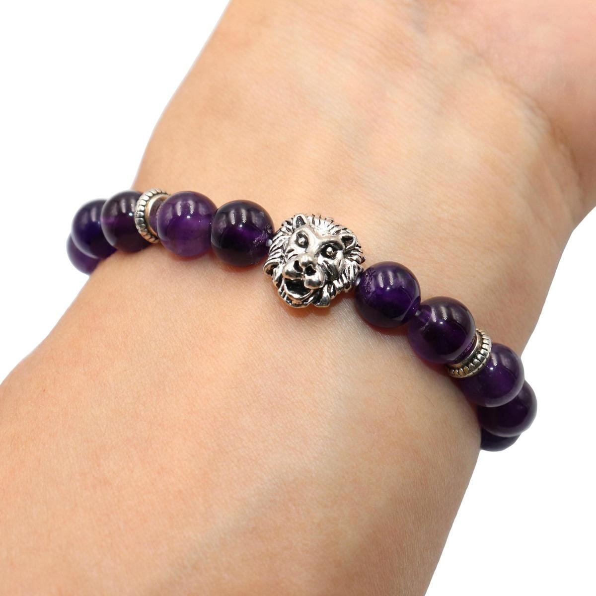 1 Manilla de piedra natural amatista 8mm con separadores en plata tibetana.