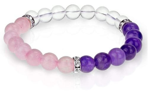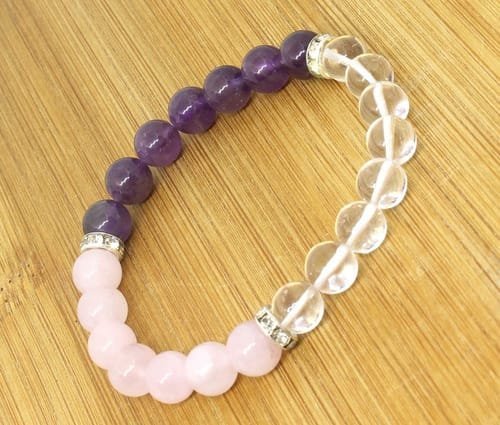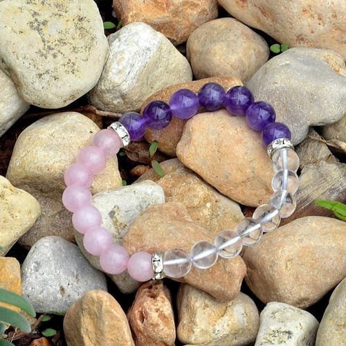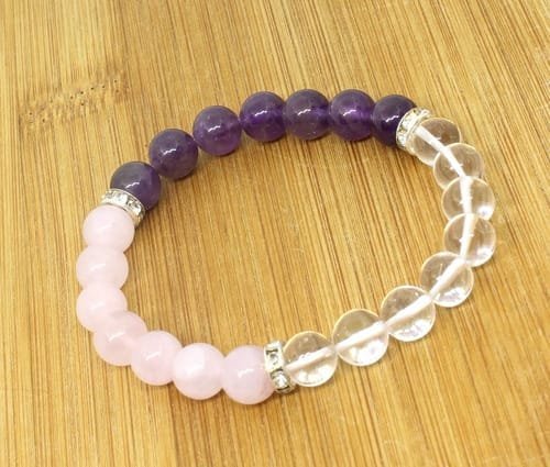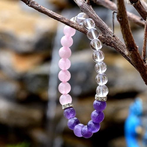 Pulsera de Cuarzo cristal, amatista y cuarzo rosa, para curación anti depresión, chakra de amor y reiki.