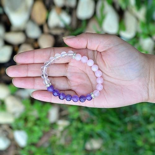 Use nuestra PULSERA DE CUARZO ROSA – AMATISTA para traer una sensación tranquila de amor fuerte y paz a usted mismo y vivir una vida feliz.