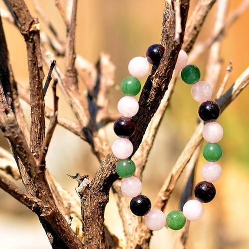 La pulsera de triple para el amor, asocia en una sola pieza el cristal más fenomenal para ayudar a atraer el romance y el amor.