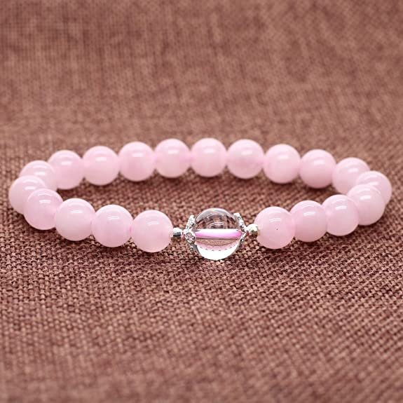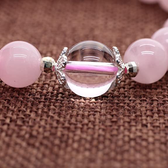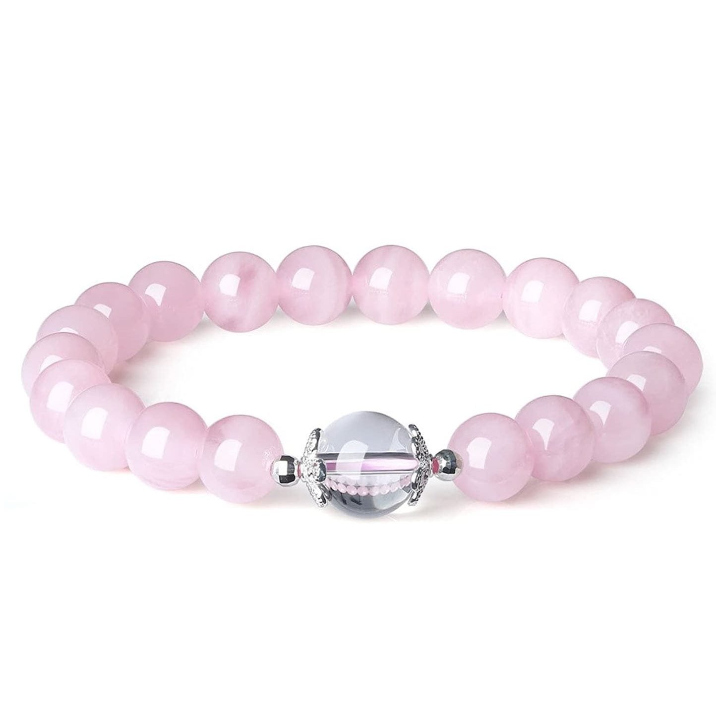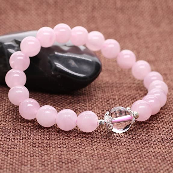 Pulsera Cuarzo Rosa Centro Cuarzo Cristal 10mm