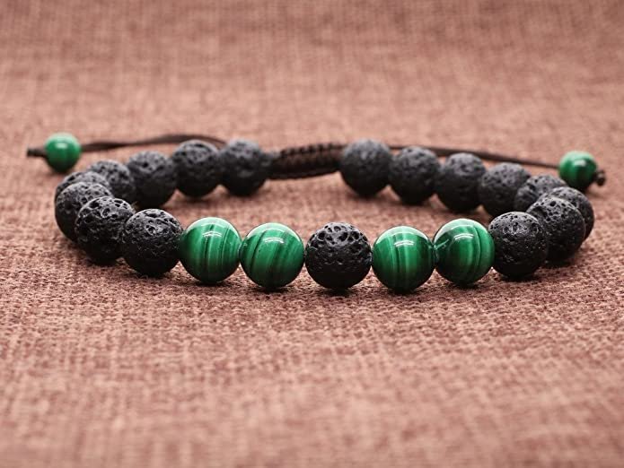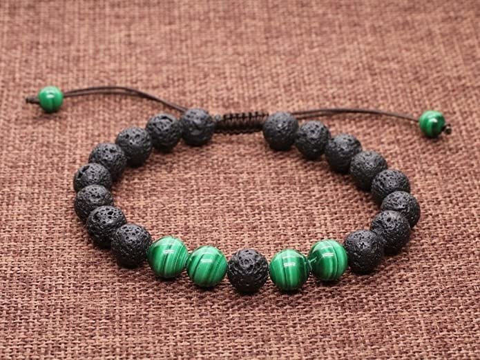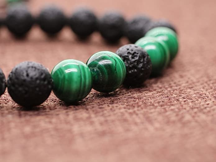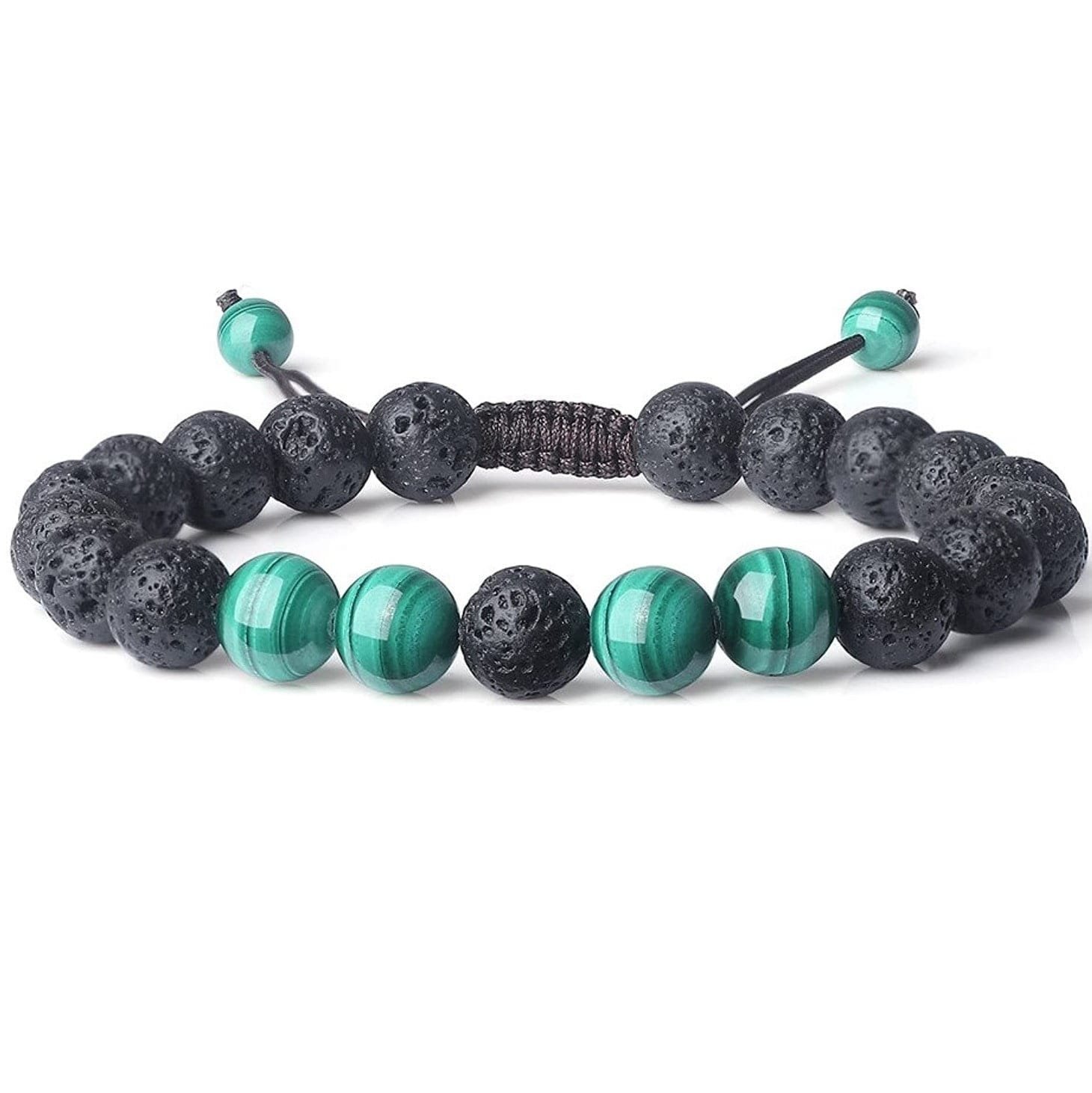 1 Pulsera Amplificadora Estabilidad y Protección de piedra natural Volcánica y Malquita Alta Calidad 8mm.