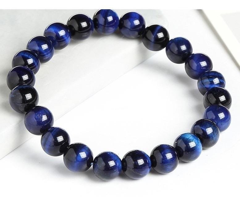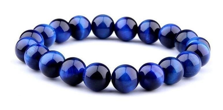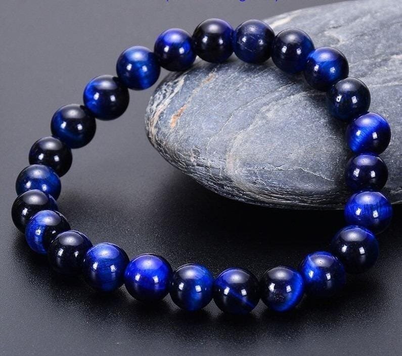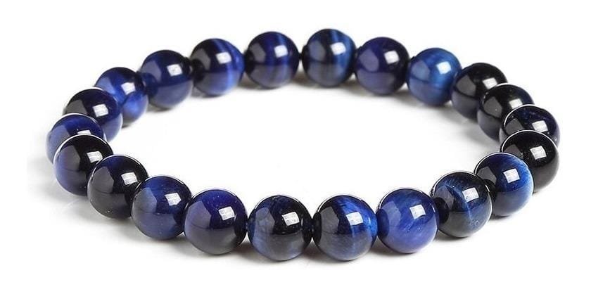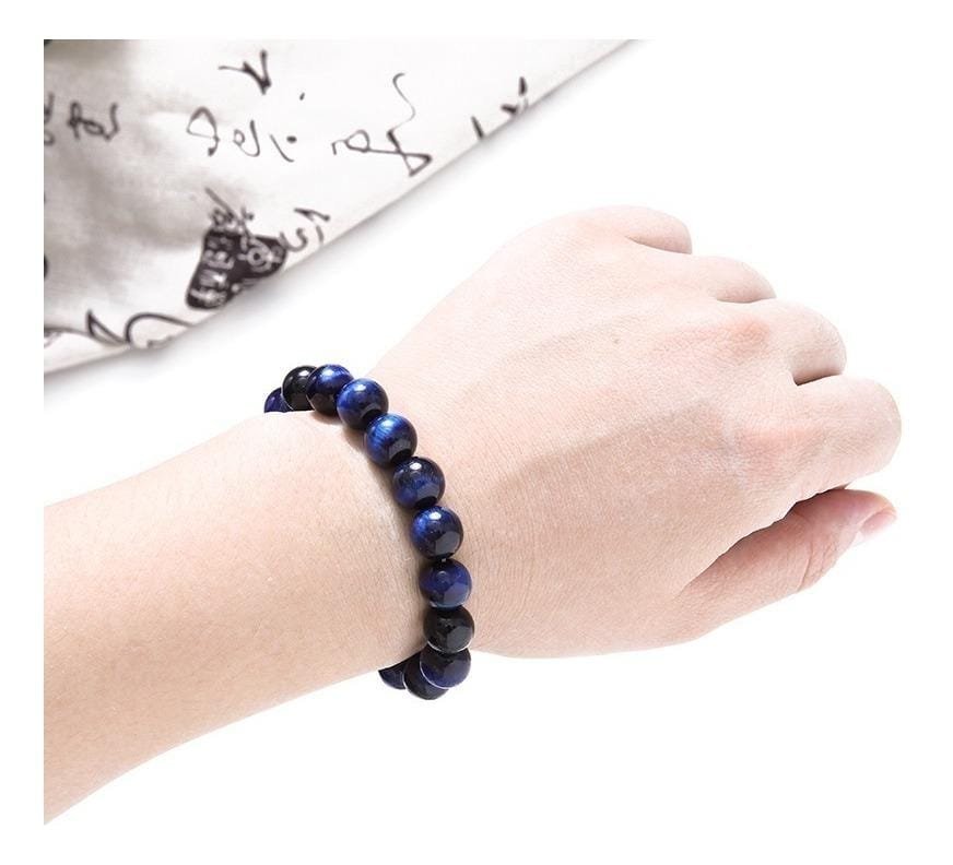 1 Pulsera elástica de piedra natural ojo de tigre azul 8mm.