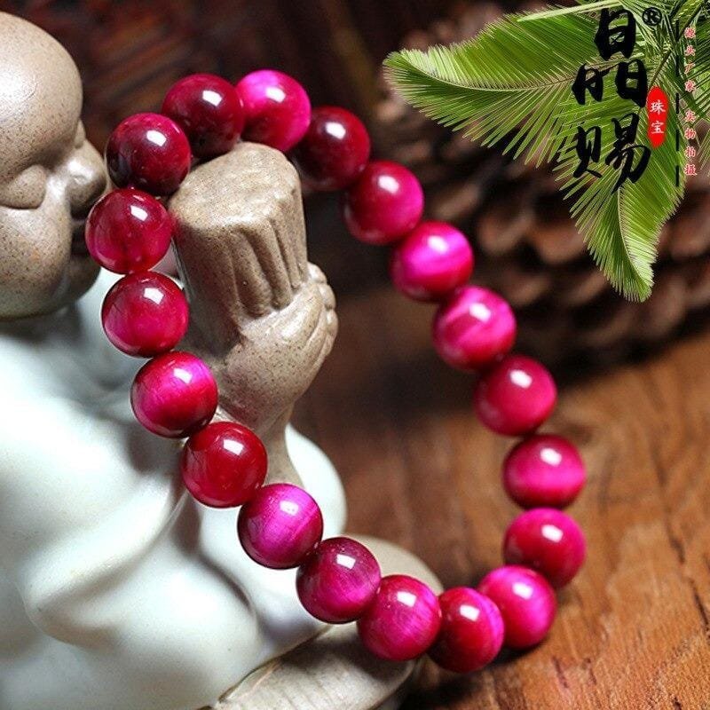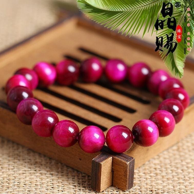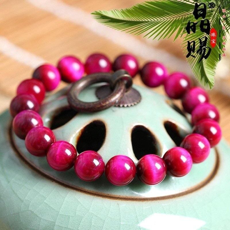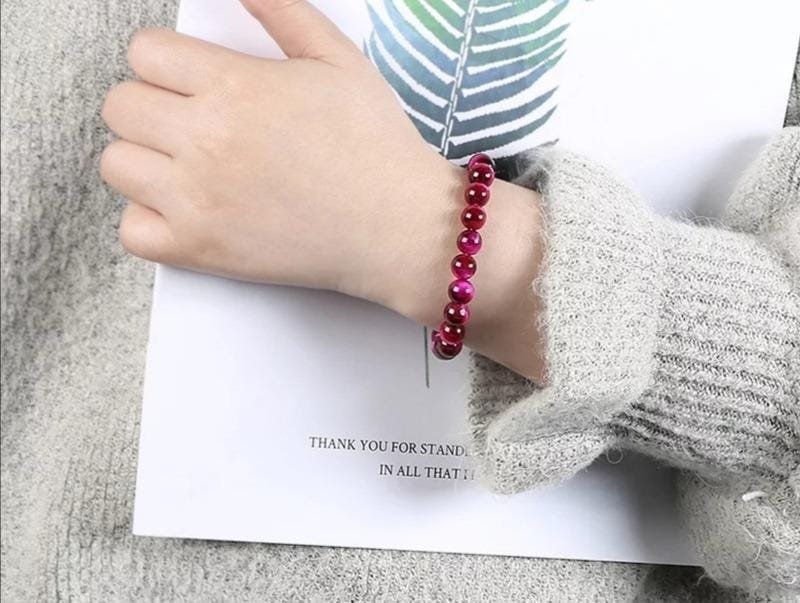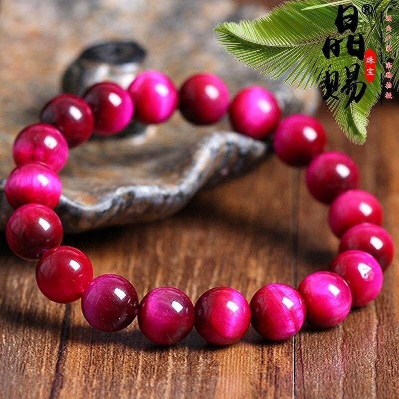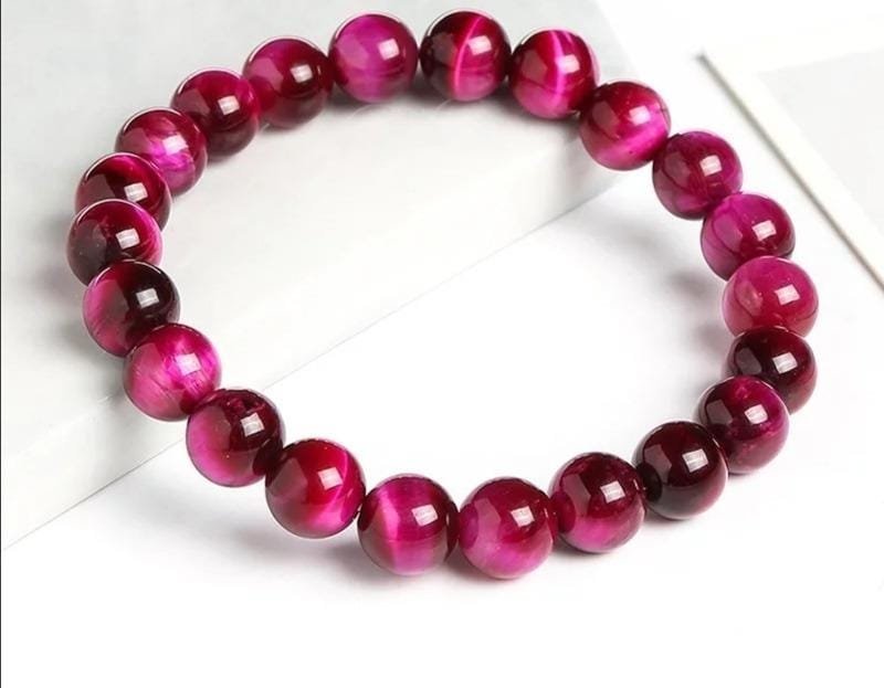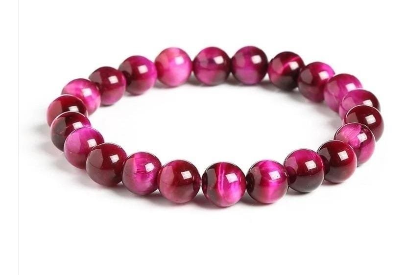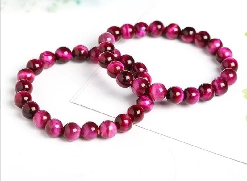 1 Manilla elástica de piedra natural ojo de tigre rosa 8mm.