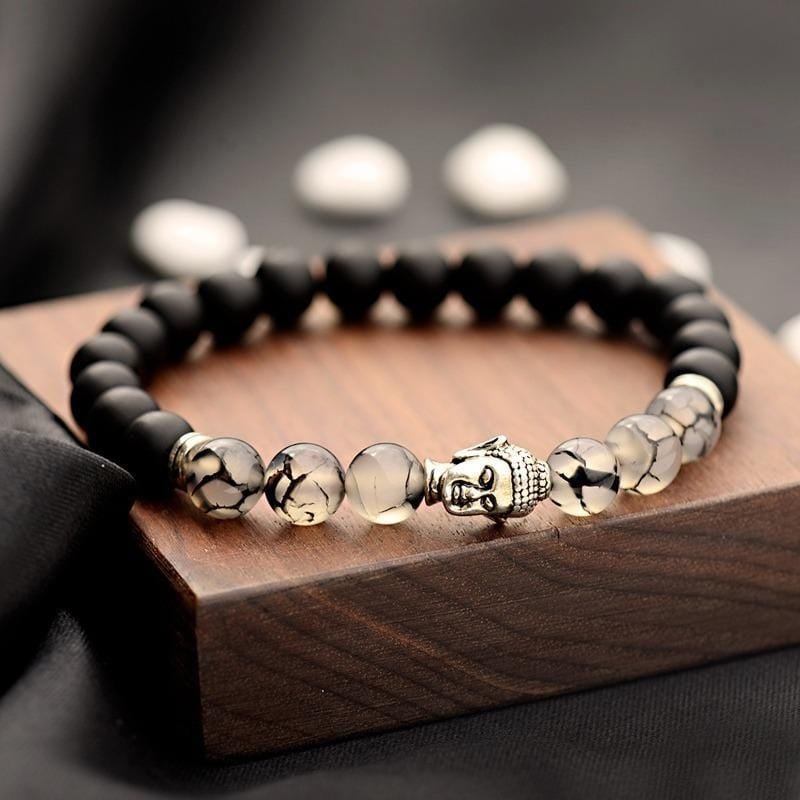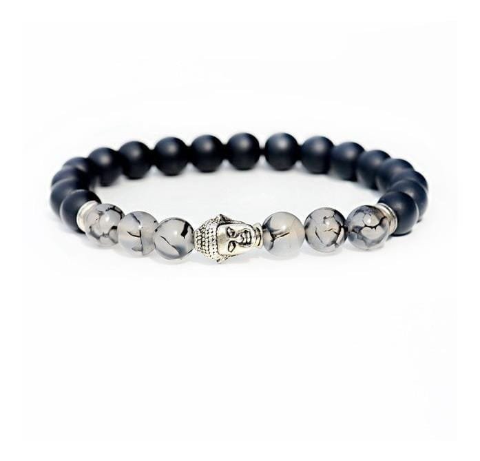 1 Manilla en piedra natural Cuarzo Turmalinado con Onix mate y separador de Buda en plata tibetana.