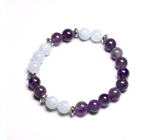 1 Pulsera de piedra natural Amatista y aguamarina 8mm.