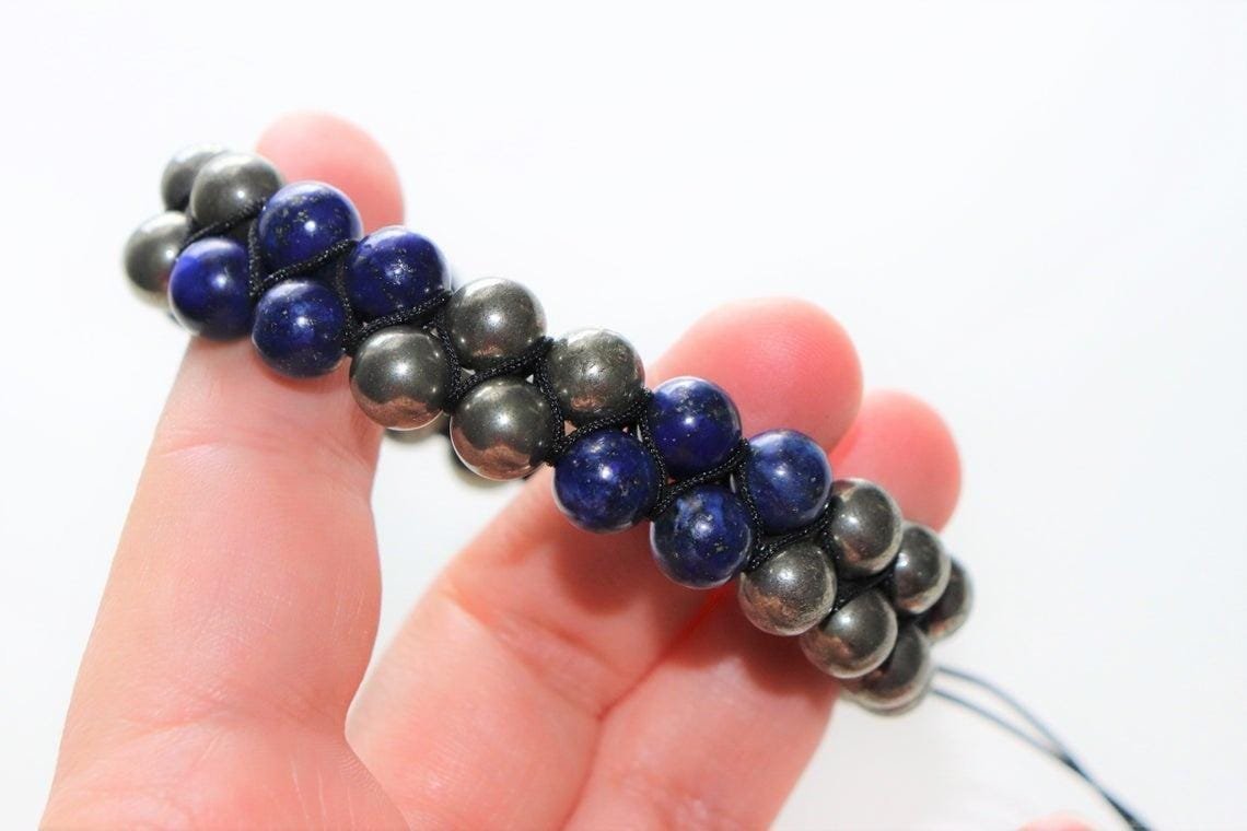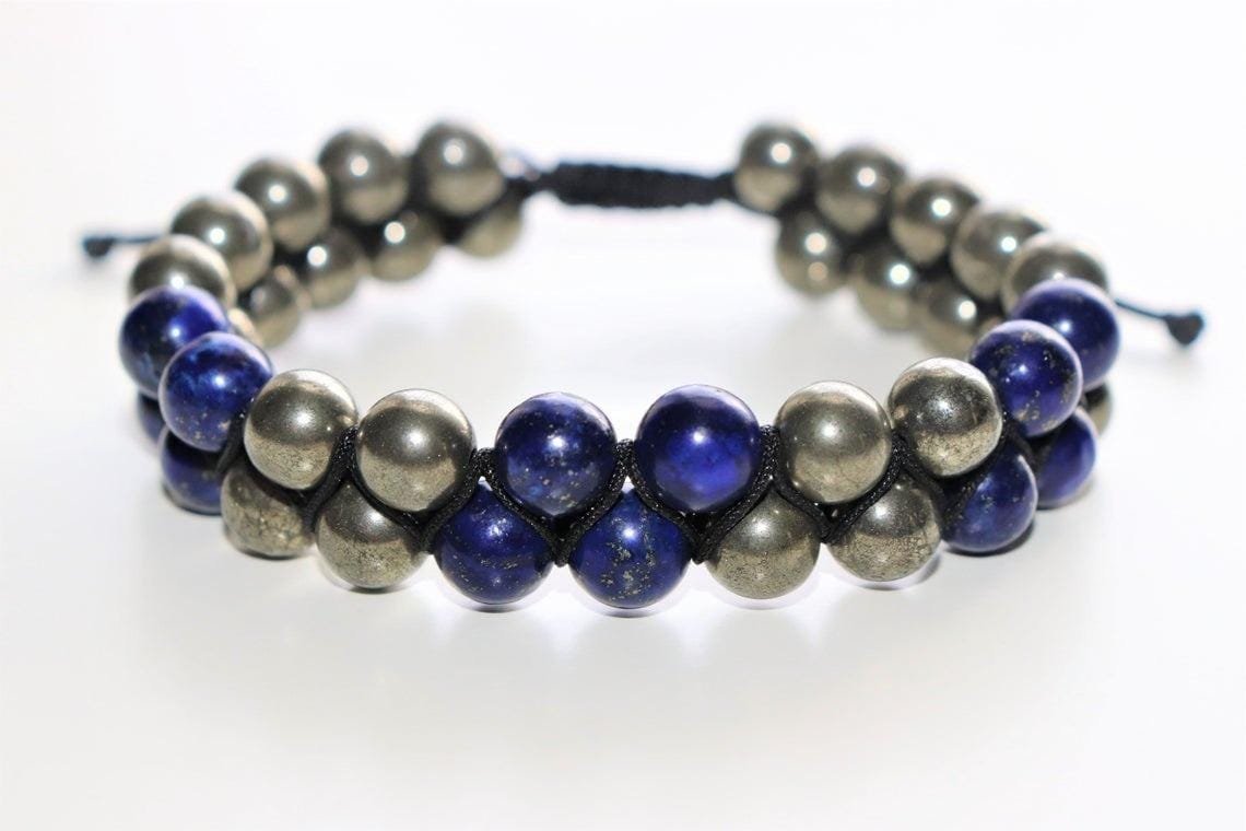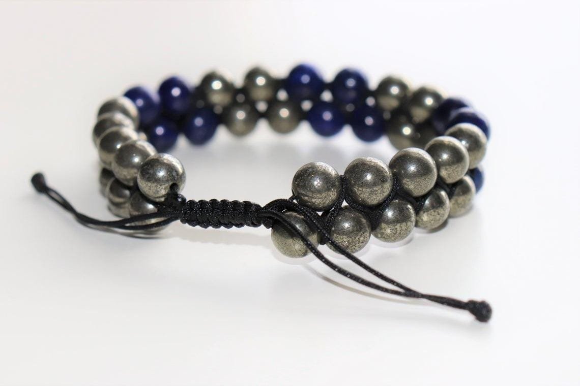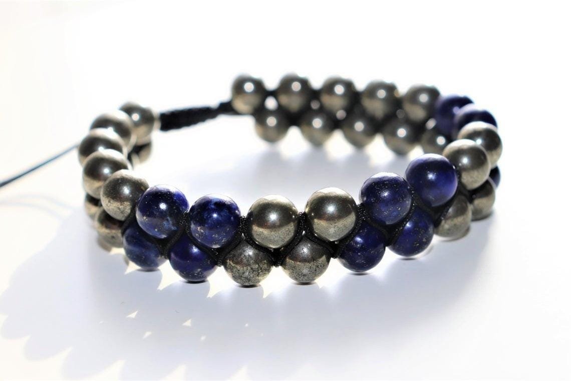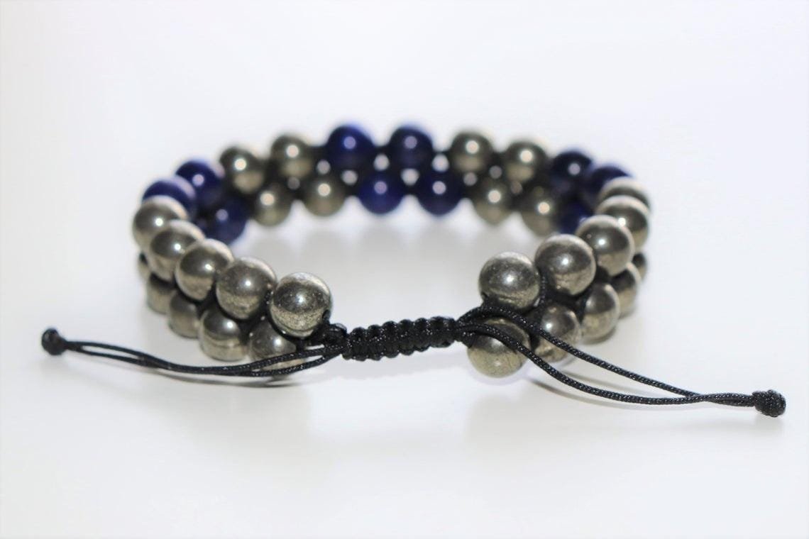 1 Manilla o pulsera doble elaborada con piedra natural lapislazuli y pirita en 8 mm.