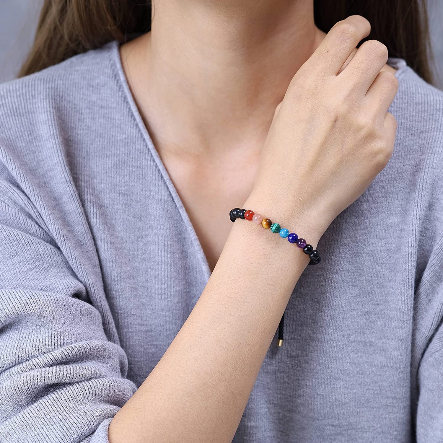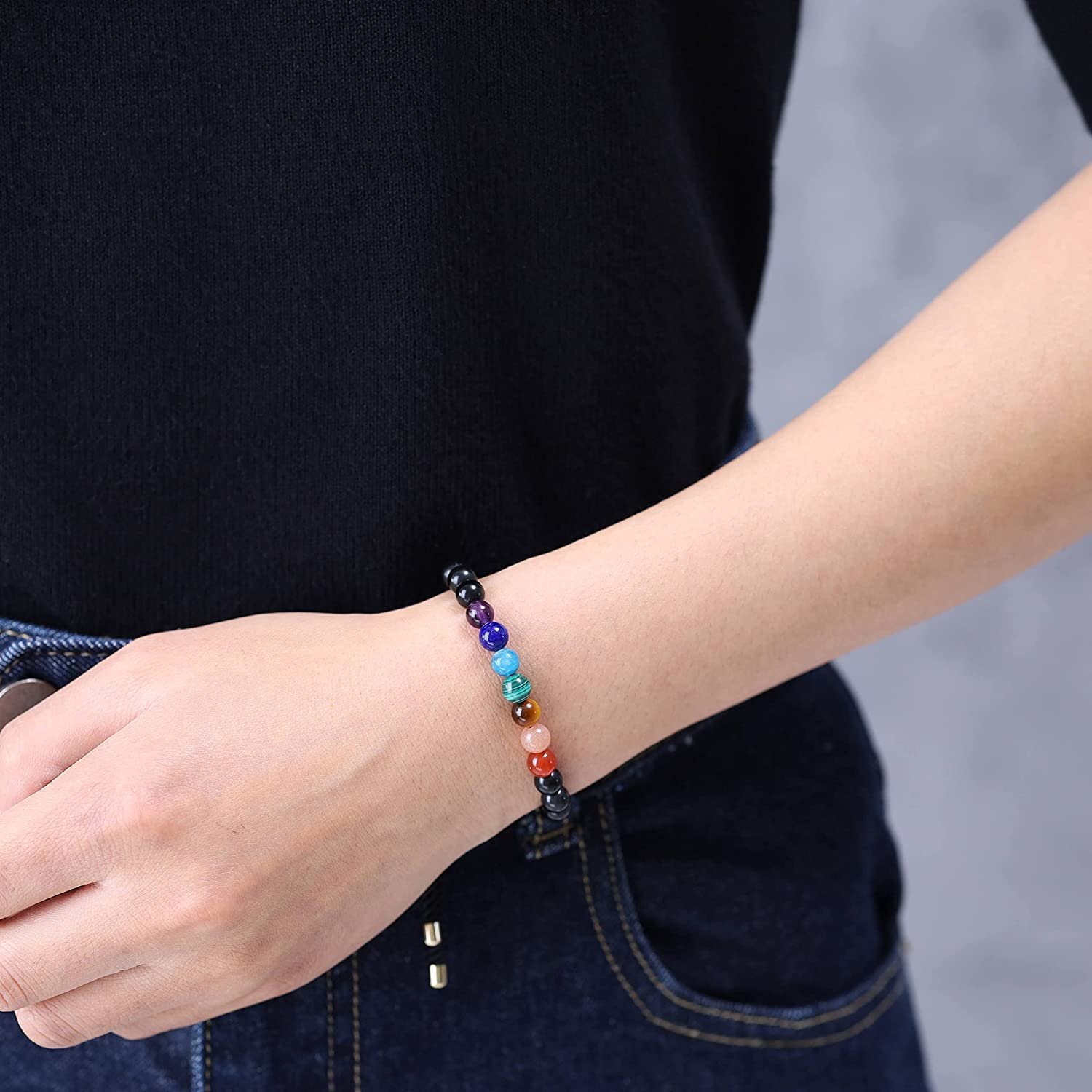 Pulsera Turmalina Negra 7 Chakras en piedras naturales