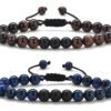 SET X 2 Manillas para pareja de piedra natural ojo de tigre azul y Ojo de tigre Rojo con onix negro mate 8mm.