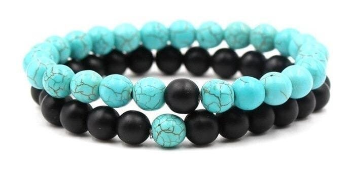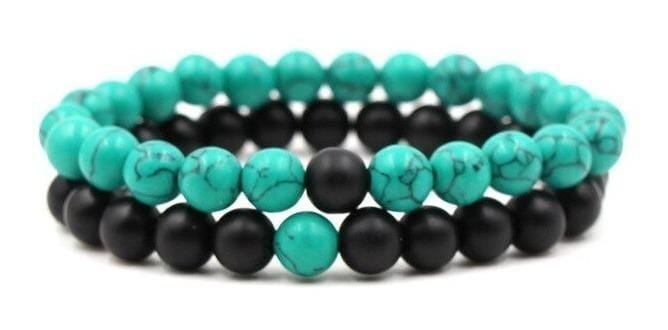 2 Manillas o pulseras ajustable en piedra natural Turquesa y Onix mate 8mm