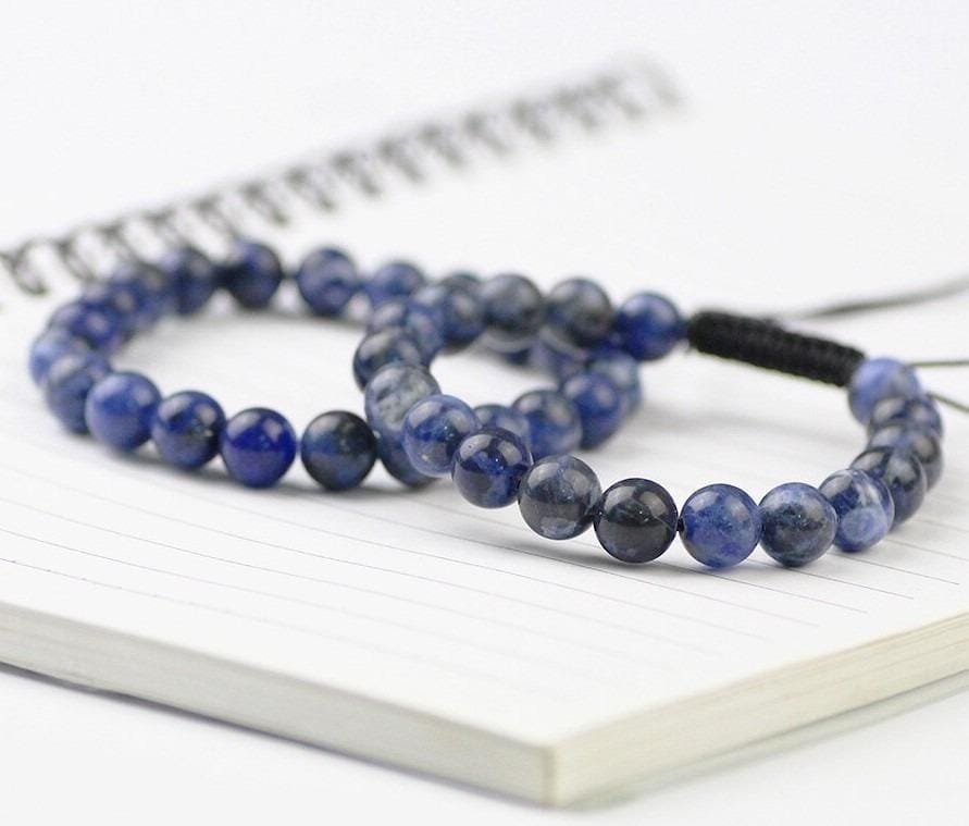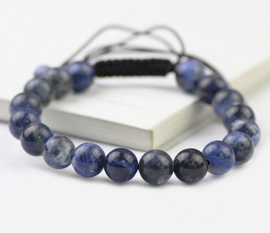 1 Manilla de piedra natural Sodalita 8mm Nudo Macramé.