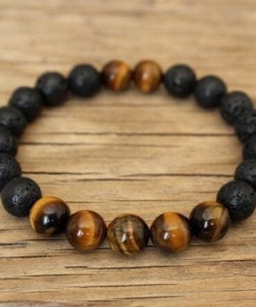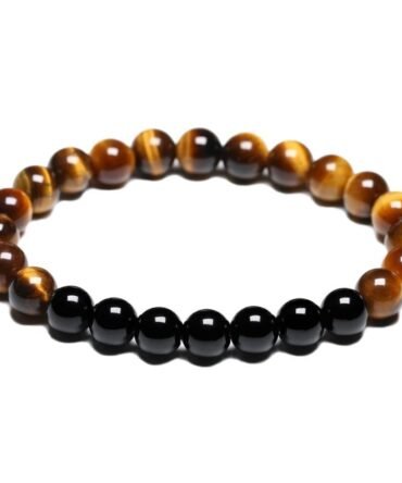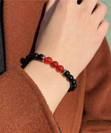 Pulsera Equilibrio Calma Cuarzo Blanco Ónix Negro Cornalina